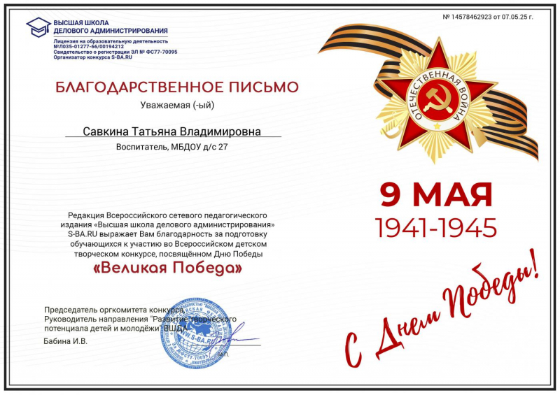 Благодарственное письмо